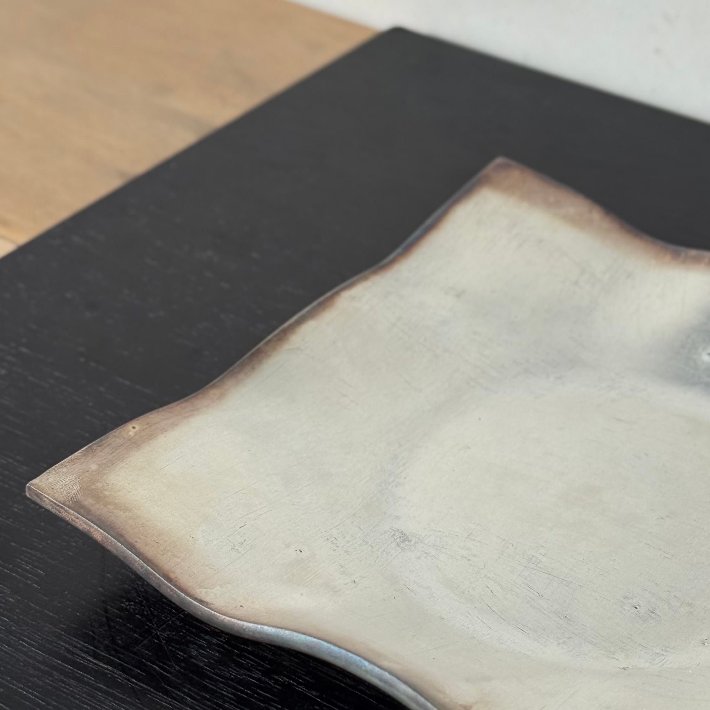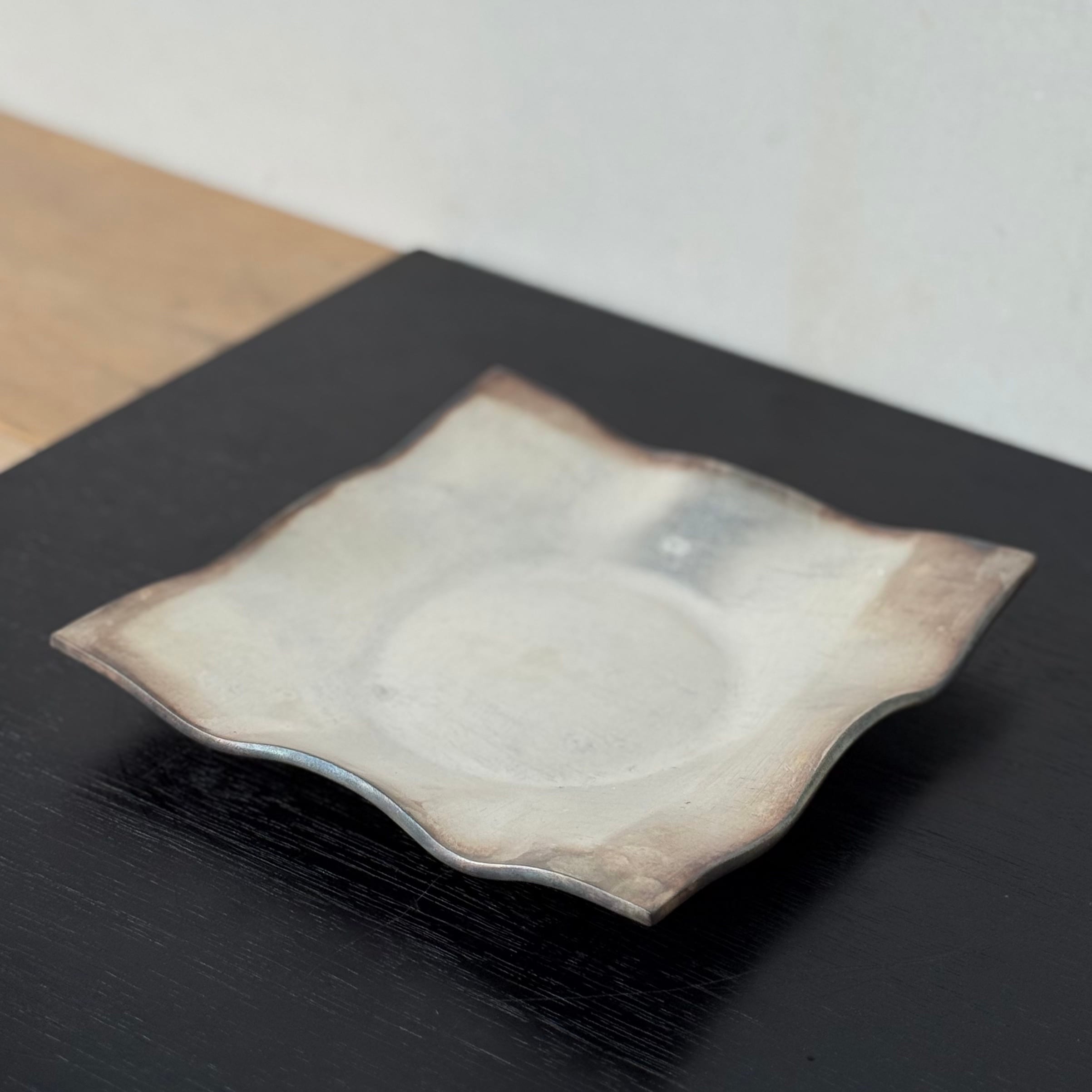 全面に銀をほどこし、縁を波打つように立ち上げた銘々皿です。