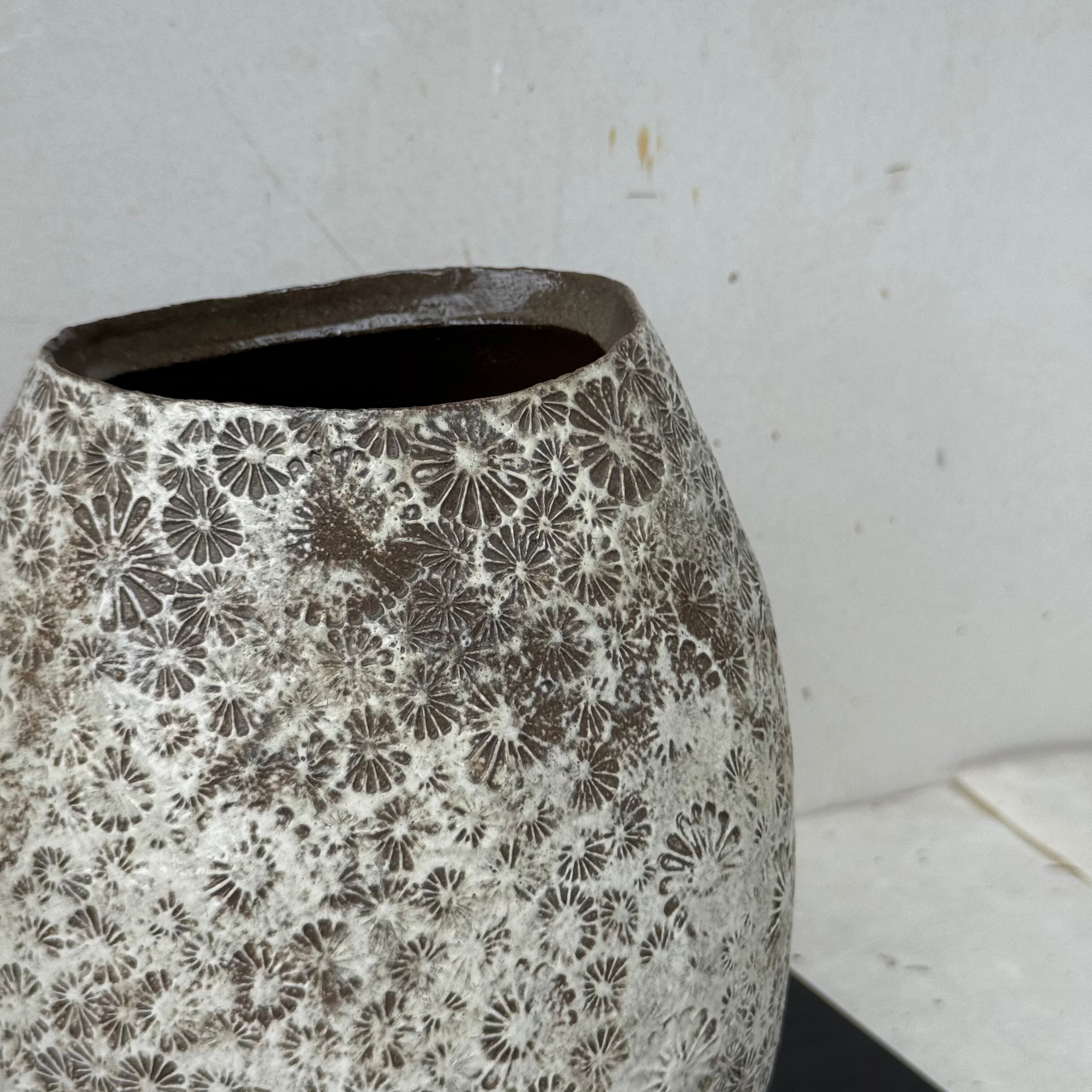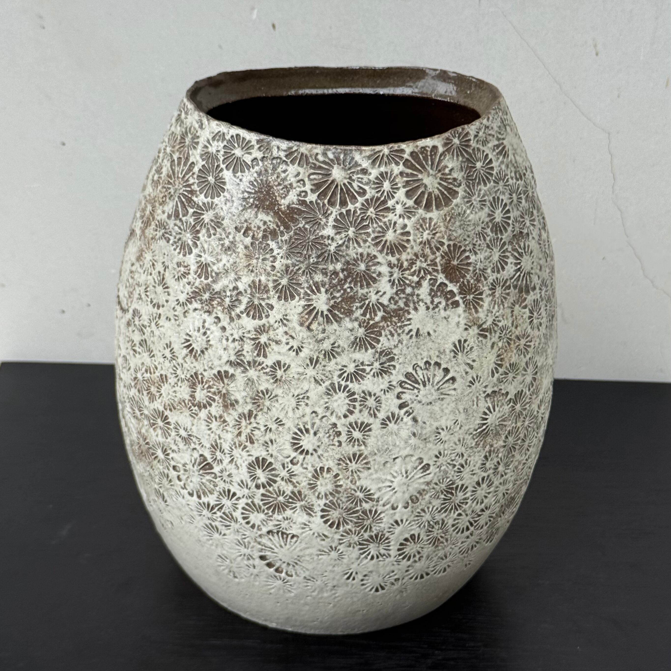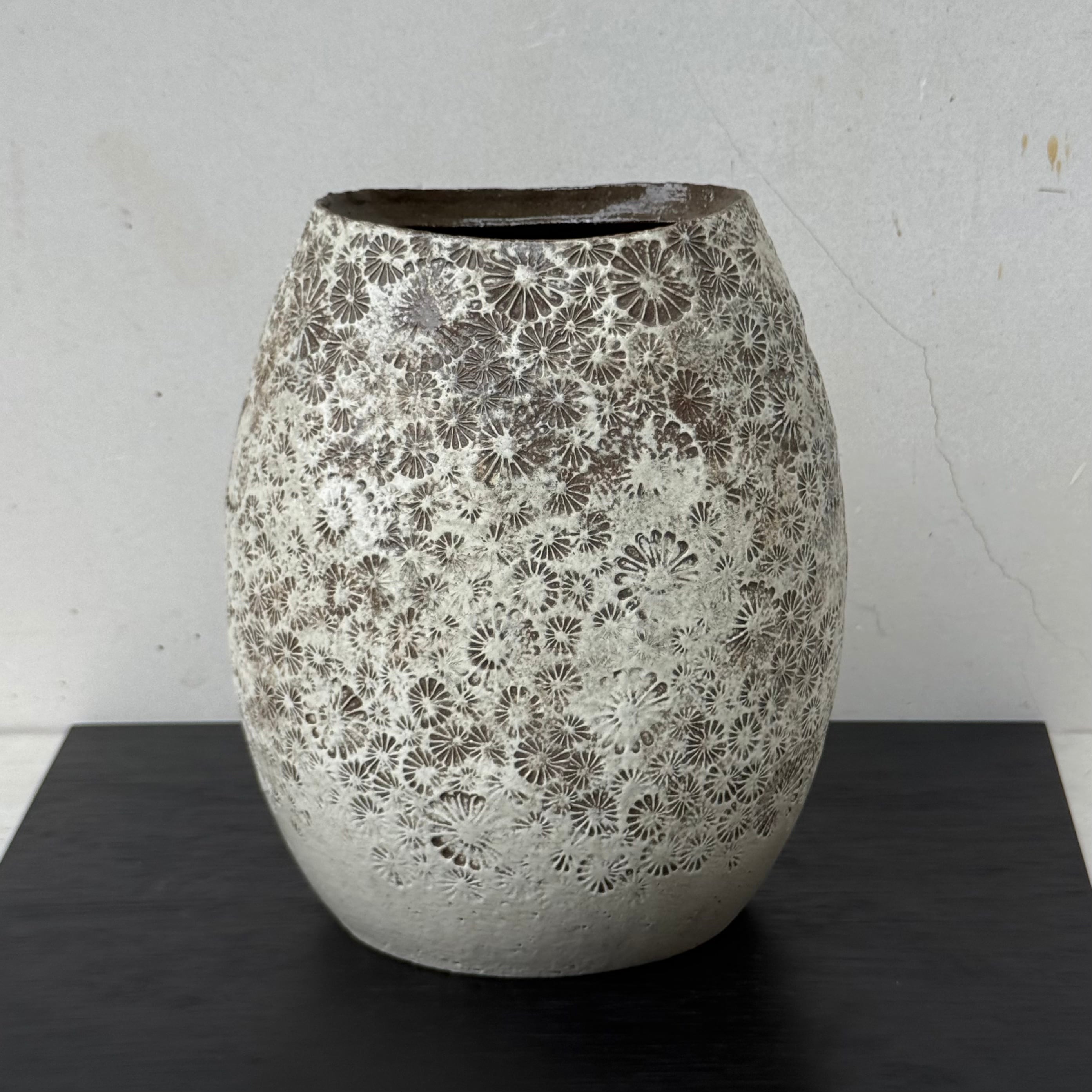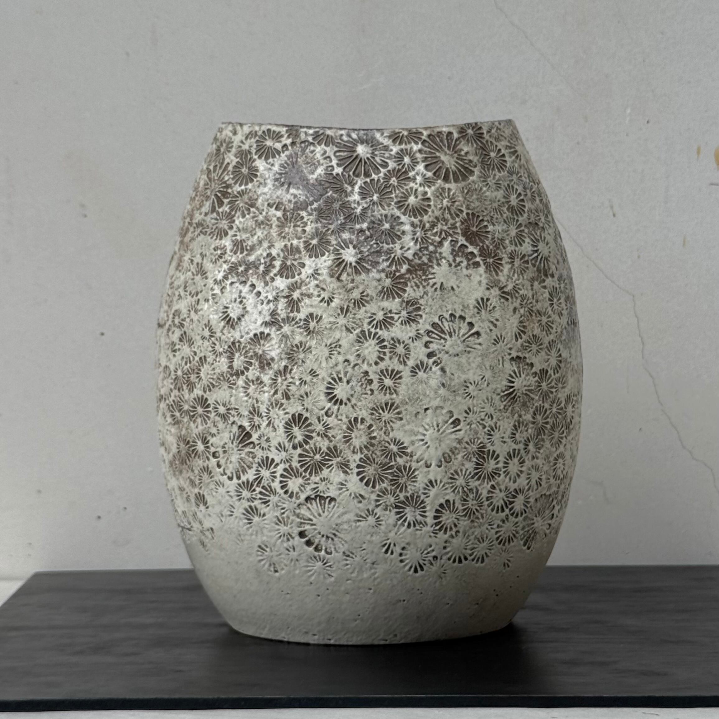 沈象嵌の大きな花入れです。口は楕円型になっております。