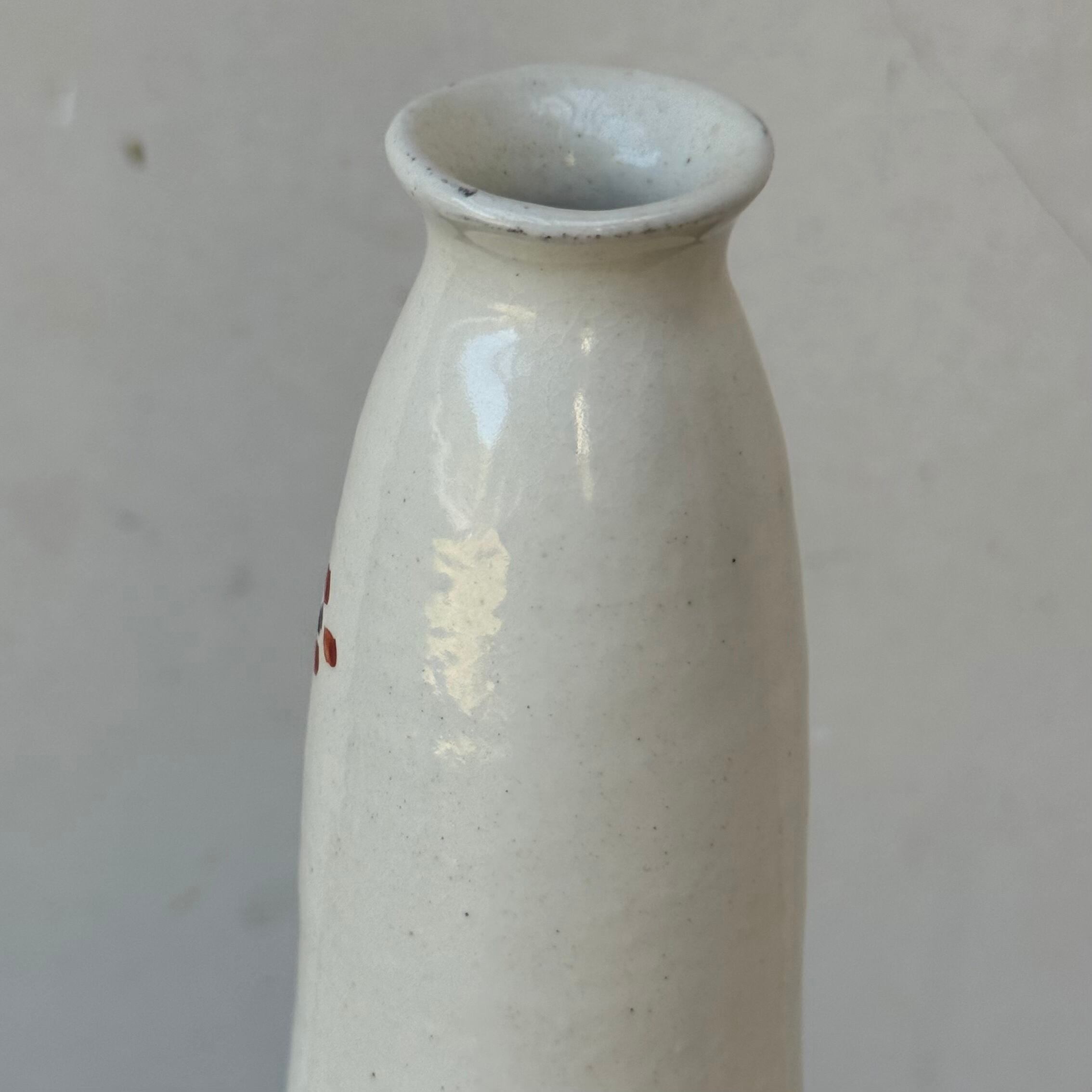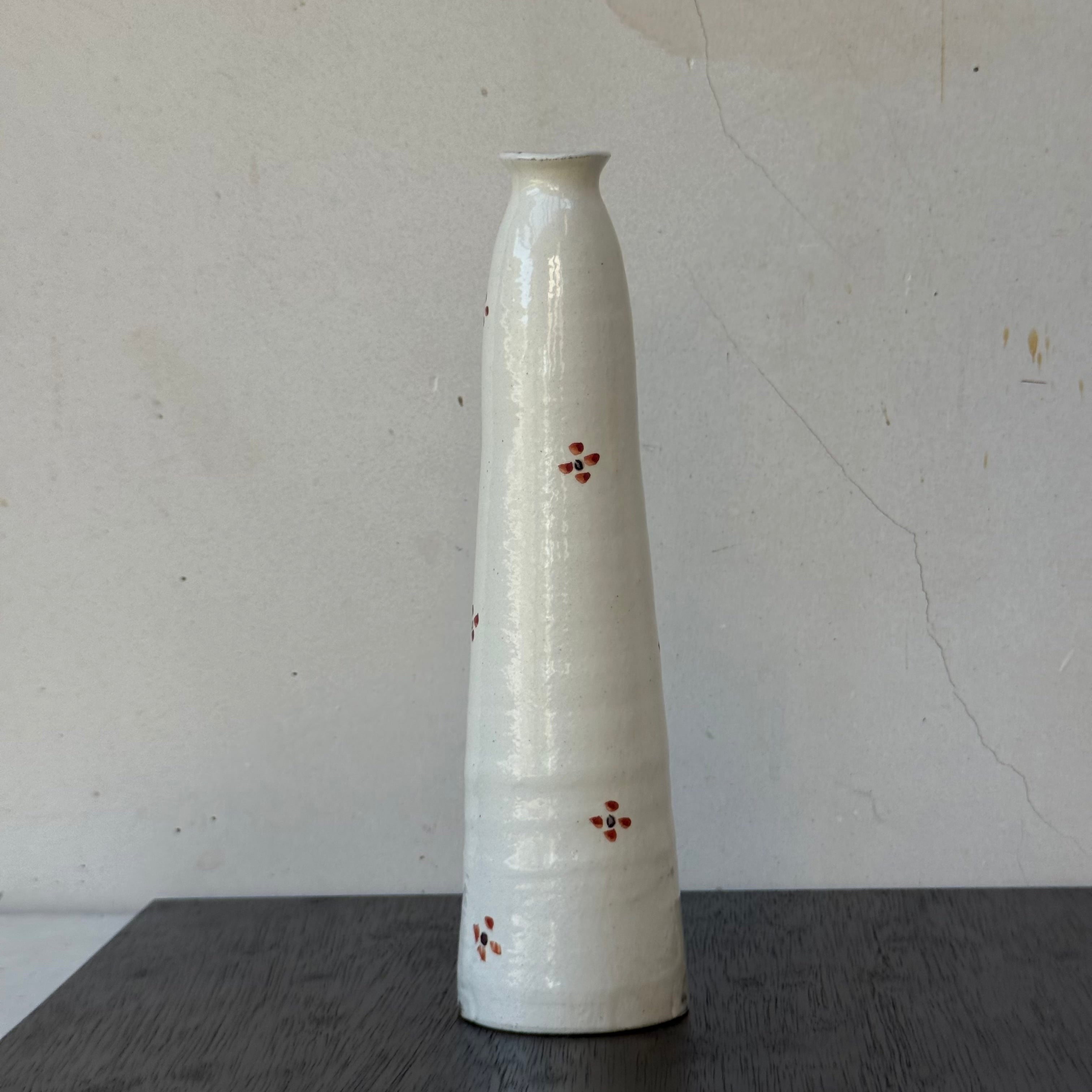 小さな赤い花をあしらった、粉引の筒花入れです。